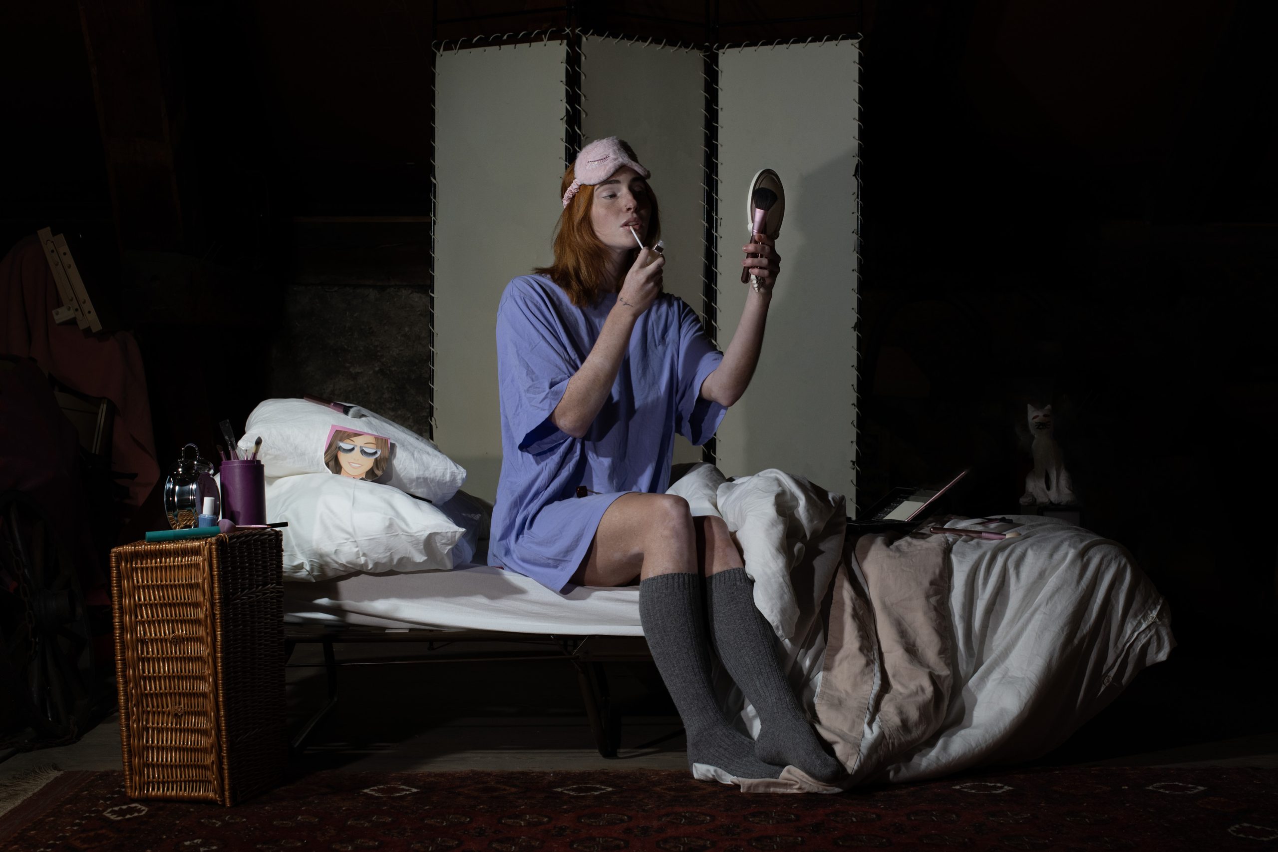 3:12. Mein Kopf wird schwerer, aber der Schlaf bleibt fern. Stattdessen sehe ich Bilder von mir selbst – nicht so, wie ich bin, sondern wie ich sein sollte. Perfekt gestylt, makellos, wie die Menschen in den Feeds. «Die Influencerin». Der Druck, ein Bild von mir zu erschaffen, das in diese glänzende Welt passt, ist erdrückend. Ich brauche meine Maske, meine Rüstung. Die Welt darf nicht sehen, was darunter liegt. Doch in der Dunkelheit wird diese Maske unerträglich. Sie zerkratzt meine Gedanken und drückt schwerer als die Decke, die mich eigentlich wärmen sollte.